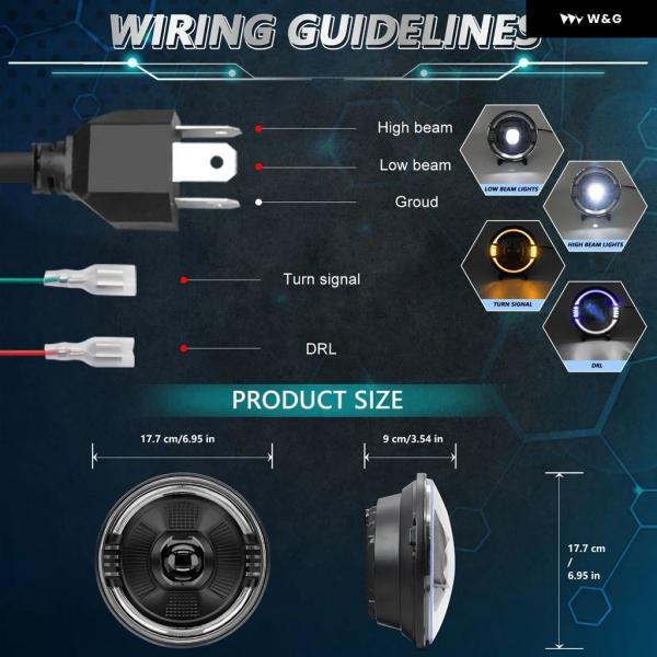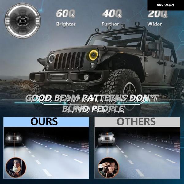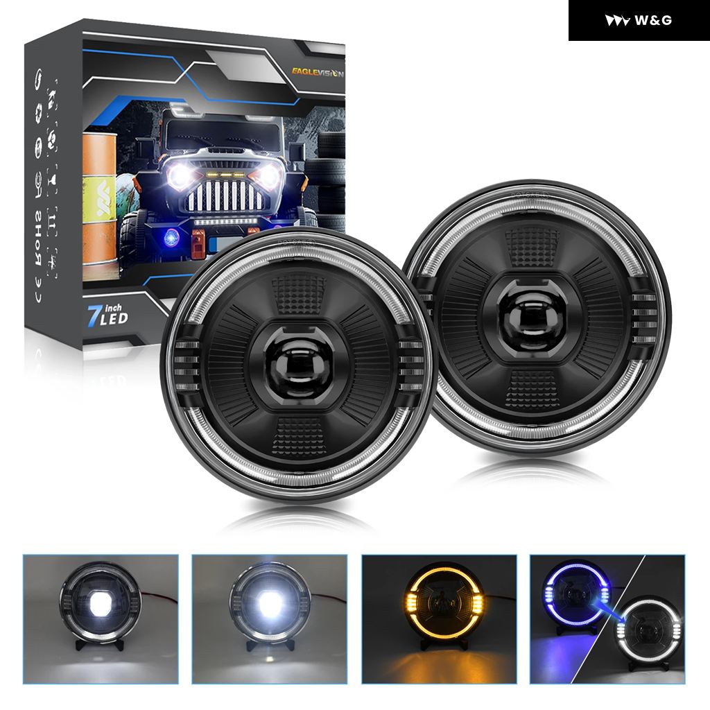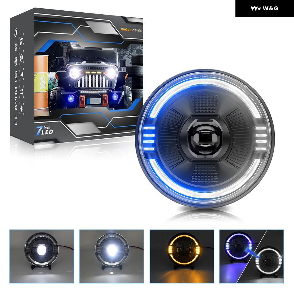 7インチ LED ライトハウスプロジェクター レンジャー ラウンドエンジェルアイ ブルー ヘッドライト H4 12V 24V オフロード 4X4 ハーレー ダビッドソン - 1pcs