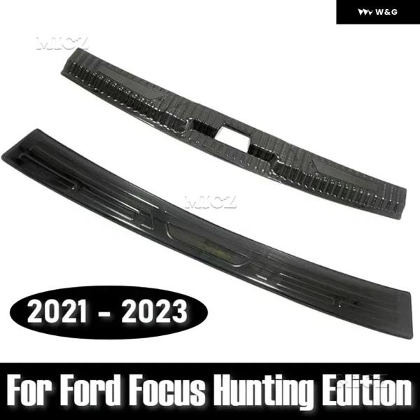 カーアクセサリー フォード フォーカス ハンティングエディション リア バンパー プロテクター シル トランク リアガード トレッドプレート カバー トリム 2 - Black brushed C
