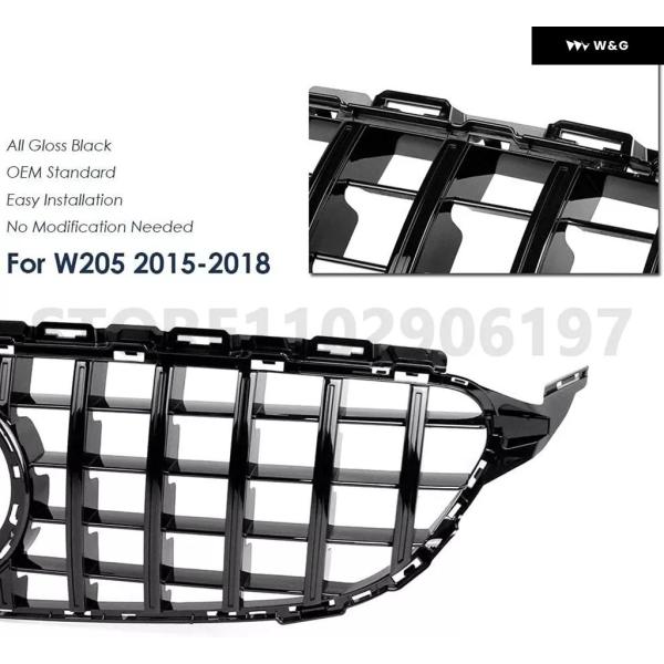 2015-2018 2019-2021 W205 C クラス メルセデス ベンツ C180 C200 C250 C300 C400 GT フロント バンパー グリル フード グリル カメラ ホール付き - 15-18 No Hole B