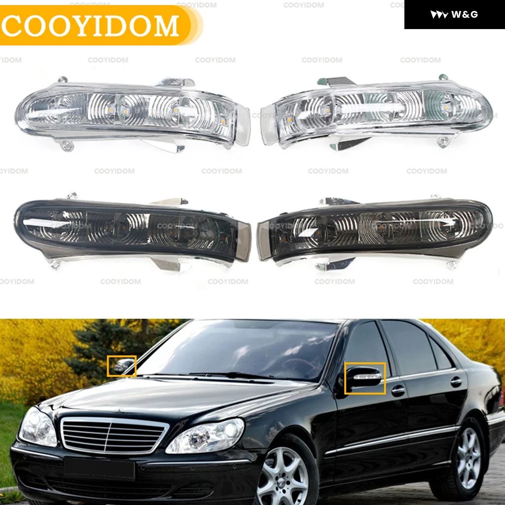 COOYIDOM 車用フロントドアサイドミラー ウィンカーライト メルセデス ベンツ W220 W215 CL S S300 1999-2002 7 LED ワイドライト