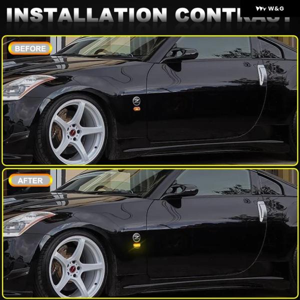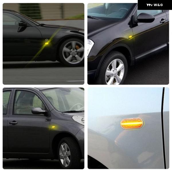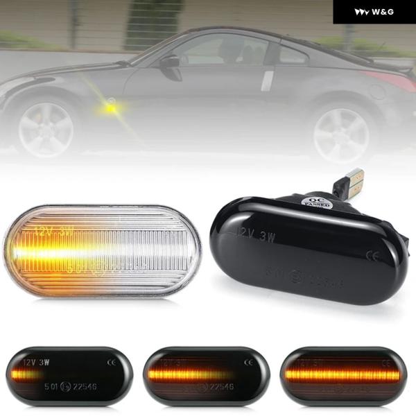 日産 350Z マイクラ ナバラ ノート キューブ ティーダ パスファインダー キャシュカイ LED サイドマーカーランプ フェンダー ウィンカー ダイナミック アン - Smoked Dynamic Amber