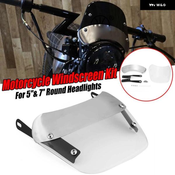 オートバイ 用ヴィンテージ風防ガラス 風防デフレクター 汎用 カスタム 5~7インチ 丸型 ヘッドライト クリア