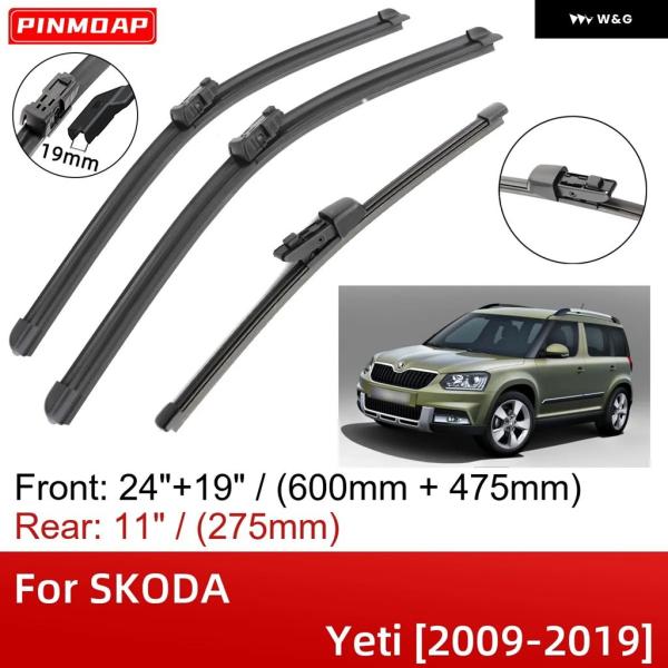 SKODA YETI 2009-2019 24インチ+19インチ+11インチ フロントリア ワイパー ブレード ブラシカッターアクセサリー 2012 – 19