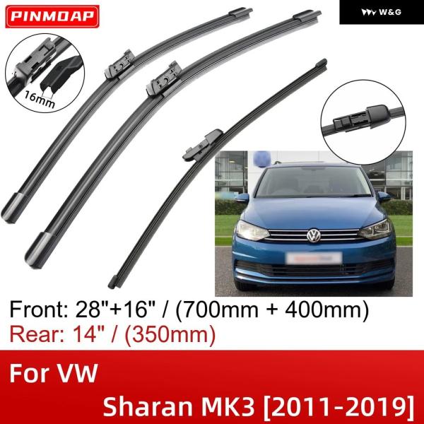 VW シャラン MK3 2011-2019 28インチ+16インチ+14インチ フロントリア ワイパー ブレード ブラシカッターアクセサリー 2013 – 18